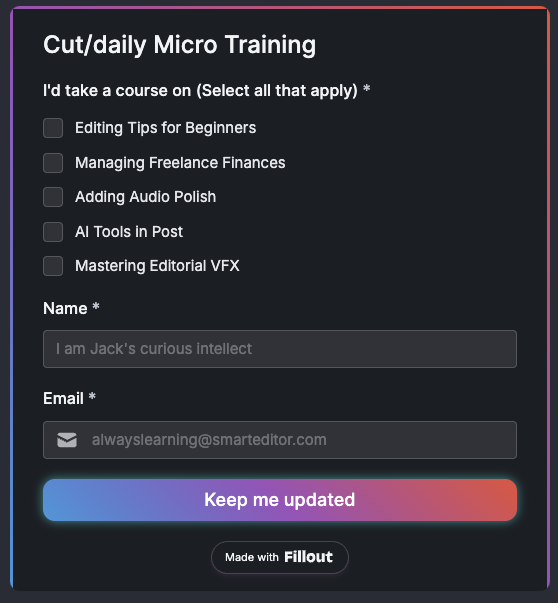 - I’ve been publishing concise weekly insights on Cut/daily – my free post-production newsletter enjoyed by 2000 editors